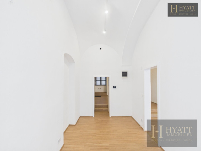 Die Nutzfläche von rund 85 m² erstreckt sich über mehrere klar strukturierte Bereiche und bietet vielseitige Nutzungsmöglichkeiten – ideal für Showroom, Galerie, Boutique, Atelier, Studio, Kanzlei oder hochwertige Dienstleistungsbetriebe. Großzügige Raumhöhen, neue Parkettböden sowie eine durchdachte Lichtinszenierung sorgen für ein helles, modernes Erscheinungsbild bei gleichzeitig historischer Anmutung.
