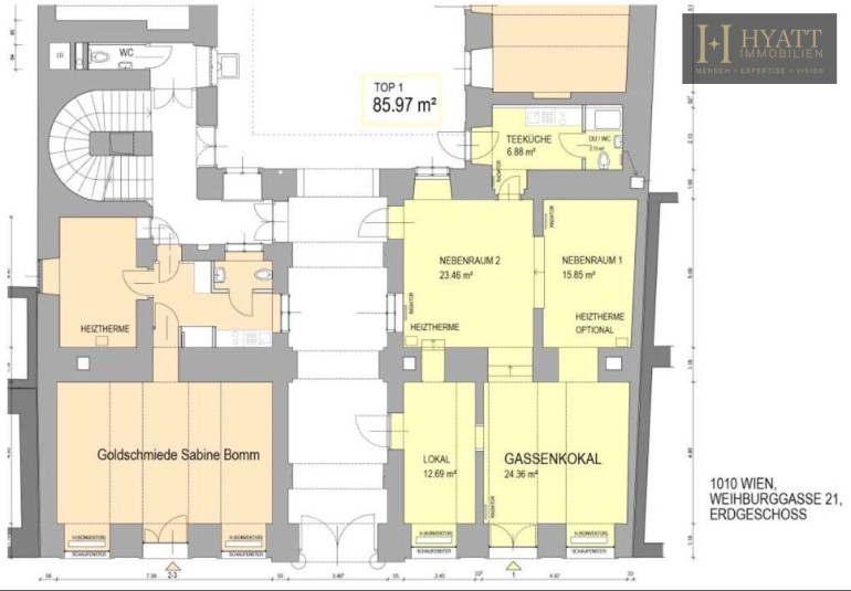 Dieses außergewöhnliche Geschäfts- bzw. Schauraumlokal vereint historischen Altbau-Charme mit modernem Design und hochwertiger Ausstattung. Die Räumlichkeiten befinden sich in einem stilvoll revitalisierten Altbau, die dem Objekt eine einzigartige, repräsentative Atmosphäre verleihen.