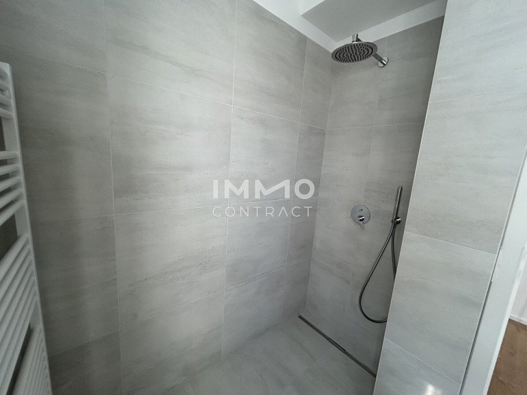 Das Badezimmer ist mit einem Fenster ausgestattet, das für viel Tageslicht sorgt und eine angenehme Belüftung ermöglicht. Eine moderne Walk-In Dusche und eine separate Toilette runden die Wohnung ab und sorgen für höchsten Komfort im Alltag.