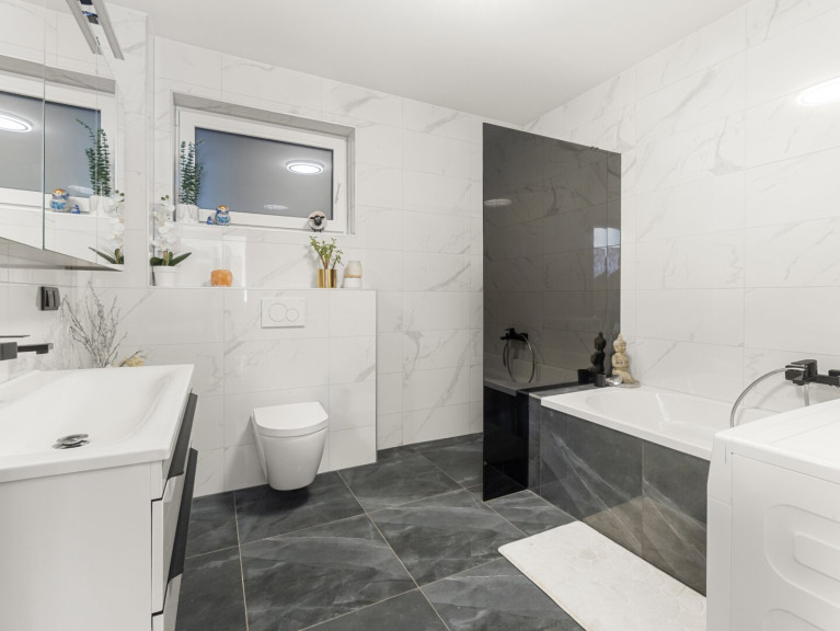 Zwei moderne Bäder, jeweils mit Dusche, im Obergeschoss zusätzlich mit Badewanne