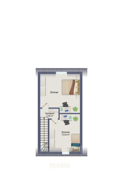 Im Obergeschoss befinden sich zwei Zimmer, die flexibel genutzt werden können. Die Zimmer bieten sich ideal als Schlafzimmer an.