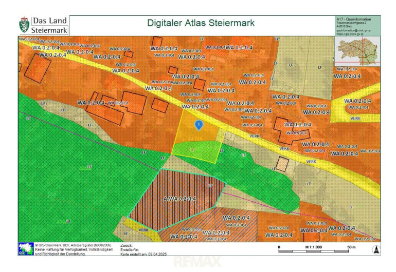 Gebaut werden darf auf dem als WA gewidmeten Teil ein Einfamilienhaus mit Satteldach, wobei eine Bebauungsfrist einzuhalten ist. Die Versorgungsleitungen (Strom, Wasser, Kanal) befinden sich in der Nähe.