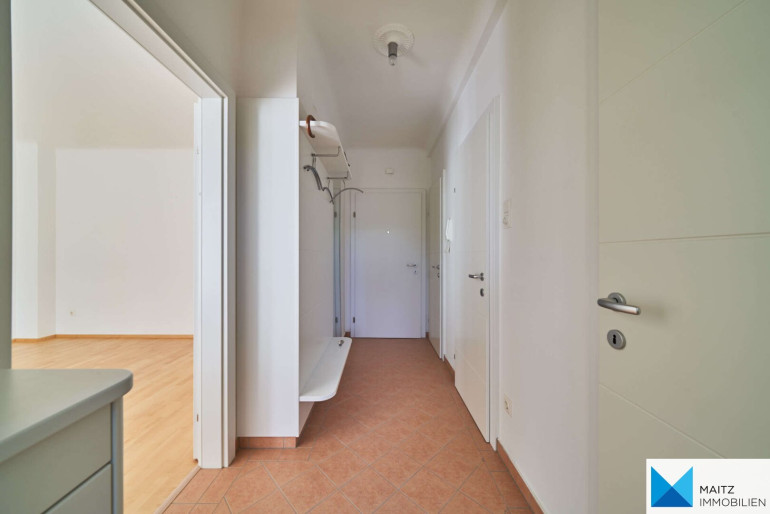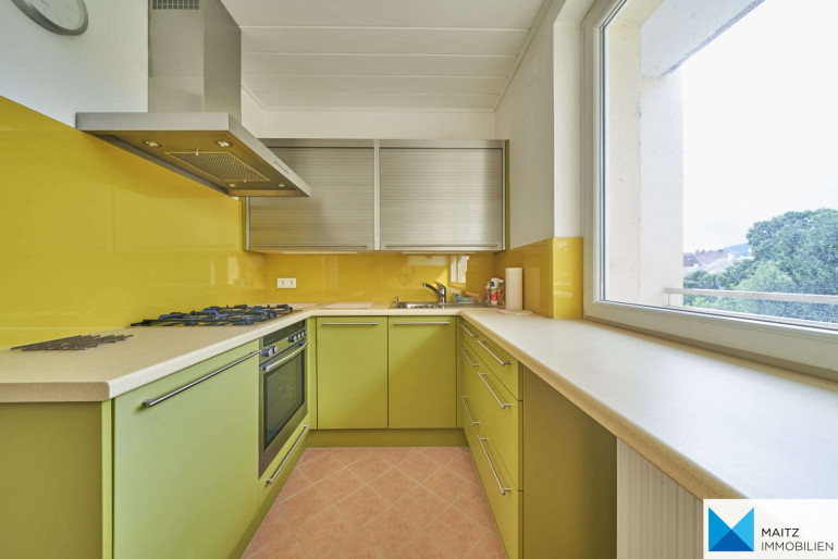 Da es sich um eine Eckwohnung im Haus handelt, genießt man stets helle Wohnräume und tolle Sichtachsen ins Freie (Baumallee vor dem Haus, bewaldete Hügel in der Umgebung).