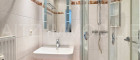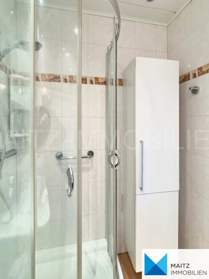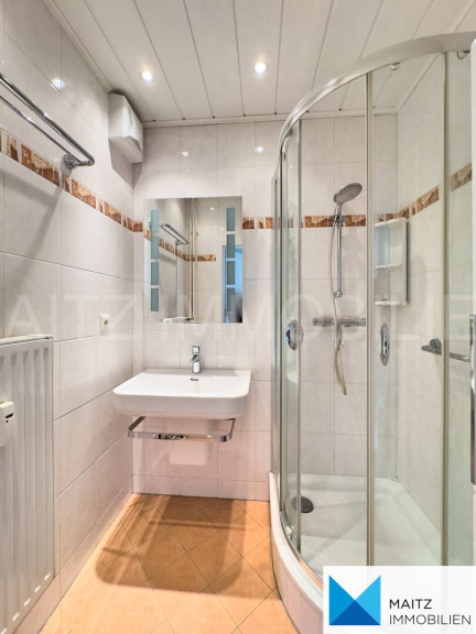 + Bad mit Dusche, beleuchtetem Spiegelschrank und Kasten