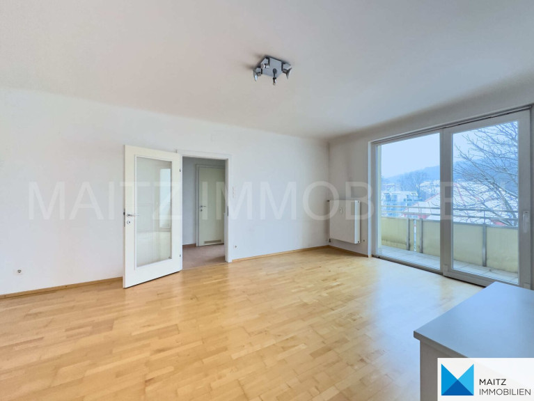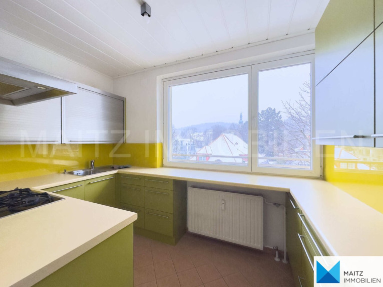 Da es sich um eine Eckwohnung im Haus handelt, genießt man stets helle Wohnräume und tolle Sichtachsen ins Freie (Baumallee vor dem Haus, bewaldete Hügel in der Umgebung).