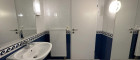 Das Badezimmer und das WC sind über den Gang zu erreichen. Beide sind verfliest und zeitgemäß ausgestattet. Das Badezimmer verfügt über eine Badewanne. Im WC ist in der Rückwand ein Einbauschrank montiert, in welchem auch der Elektroboiler versteckt ist. Beide Räume verfügen über eine Lüftungsventilation.