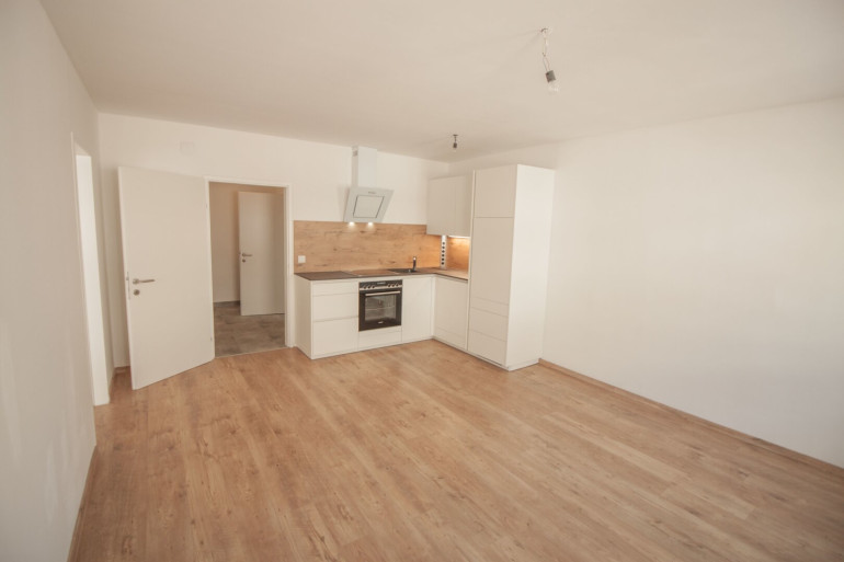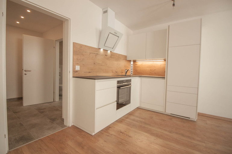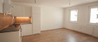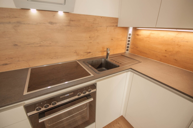 - Wohnbereich mit anschließender offener, bereits voll ausgestatteter DAN-Markenküche