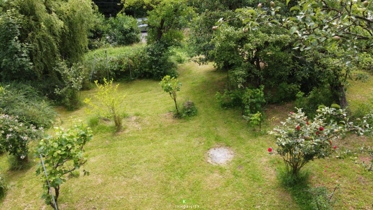 Am Grundstück befinden sich Rosensträucher, Pfirsich, Brombeeren, Weinstöcke Magnolie, Josta, Feige Kiwi, etc.