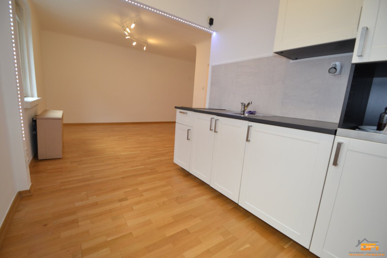 Die Raumaufteilung ist wie folgt: Vorraum, Bad mit Dusche, separates WC, 1 riesiges Wohn-/Schlafzimmer mit angrenzender, voll ausgestatteten Küche (neuwertig)