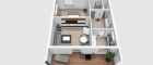 Bestehend aus einem Wohnzimmer mit Ausgang auf die westseitige Terrasse / Loggia (11,25 m²) wodurch sich der Wohnbereich ins freie erweitert, Schlafzimmer, hochwertige Küche samt Elektra Bregenz Geräten (Ceranfeld, Multifunktionsherd mit 8 Kochfunktionen, Geschirrspüler, Eiskasten mit Gefrierfach), Edelstahlspüle samt praktischer Küchenarmatur, Edelstahl Dunstabzugshaube sowie ein Waschmaschinenanschluss, Fliesenbad mit bodenebener Dusche und Waschtisch, separates Fliesen-WC sowie ein Vorzimmer von welchem sämtliche Räume zentral begehbar sind.