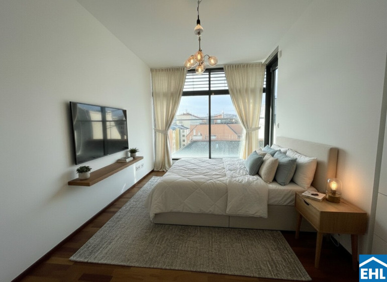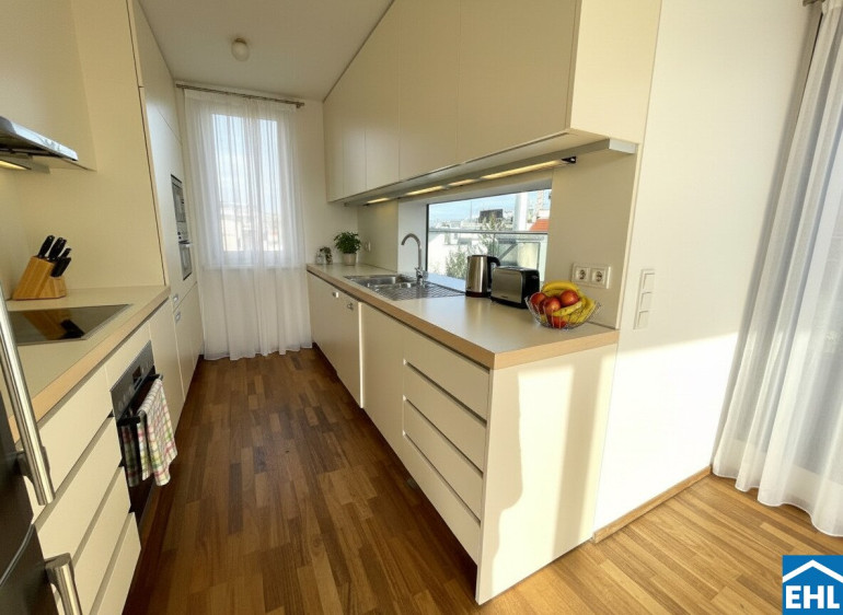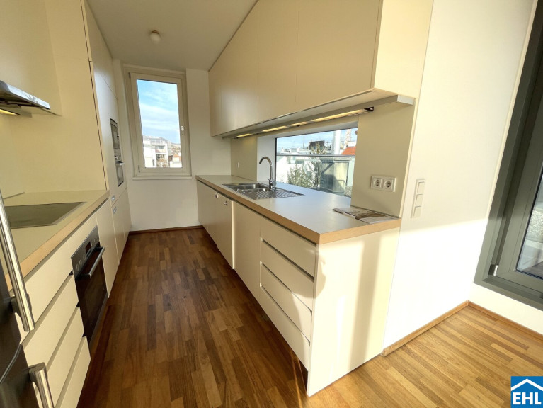 Die Wohnung selbst befindet sich im 2. Dachgeschoss und unterteilt sich in eine großzügige Wohnküche, drei separat begehbare ruhig gelegene Schlafzimmer, eines davon mit Schrankraum, ein modernes Badezimmer mit Wanne, Dusche, WC und Waschmaschinenanschluss, sowie eine separate Toilette und einen geräumiger Vorraum. Die gesamt über 70m² großen Terrassen bilden das Highlight der Wohnung und sorgen für Entspannung im Freien und reichlich Sonnenstunden.