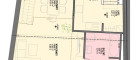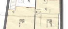 Im unteren Bereich befinden sich das Wohnzimmer mit Küchenbereich, 2 Schlafzimmer und das Badezimmer mit Badewanne und WC.