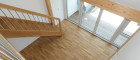 Moderne Parkett- und Fliesenböden prägen das wohlige Raumgefühl.