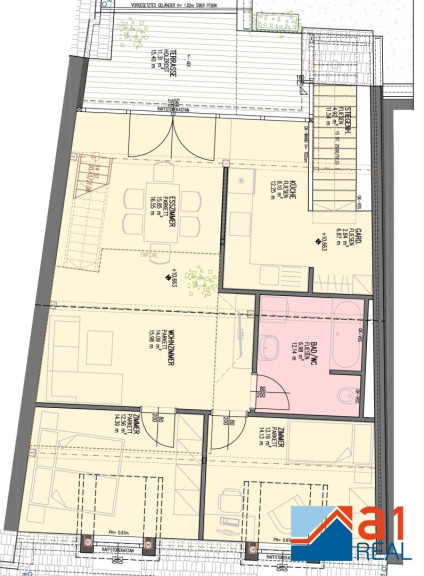 Hervorzuheben ist natürlich die Dachterrasse, welche Sie über das Wohnzimmer erreichen.