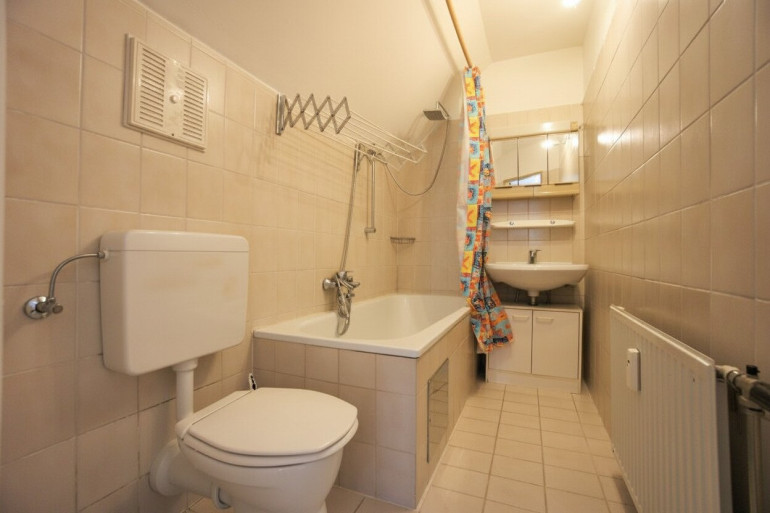 Fliesen, Laminatboden, Zentralheizung, Wohnküche / offene Küche, Badewanne, Parkplatz