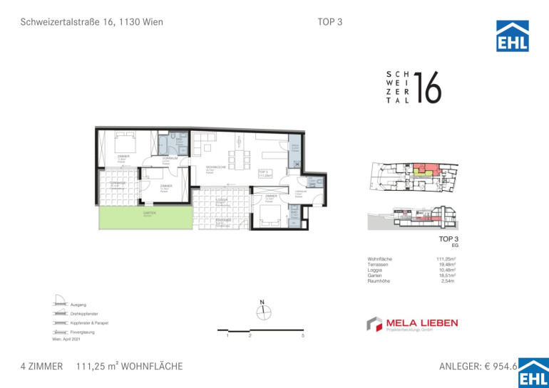 - Energiewerte Top 11 - HWB: Kategorie B; 38,5 kWh/m²a; fGEE 0,80 (Kat. A)