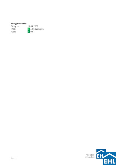 - Energiewerte „Straßentrakt“ - HWB: Kategorie B; 40,5 kWh/m²a; fGEE 0,81 (Kat. A)