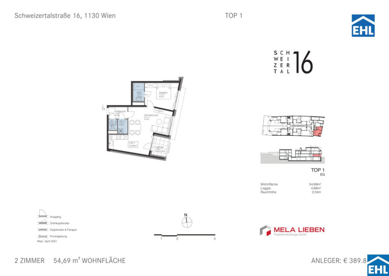 - Energiewerte Top 11 - HWB: Kategorie B; 38,5 kWh/m²a; fGEE 0,80 (Kat. A)