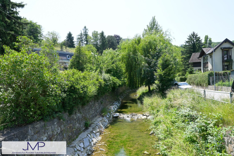 Der idyllische, südseitig gelegene Garten grenzt unmittelbar an den Weidlingbach. Ebenfalls vorhanden ist eine Garage mit ca. 43 m² mit direktem Zugang zum Haus.