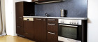 Der Wohnbereich hat drei große Balkontüren, welche komplett geöffnet werden können. Die Küche ist mit Kühlschrank, E-Herd, Cerankochfeld und Geschirrspüler voll ausgestattet.