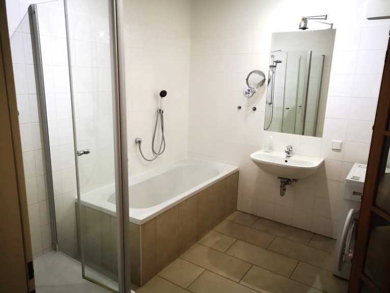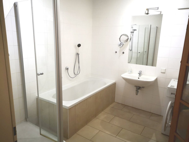 Im Wohn- sowie Schlafzimmer sind Parkettböden vergelegt. Im Badezimmer & der Toilette helle Steinfließen. Im großzügigen Badezimmer sind Badewanne & Dusche vorhanden. Die Toilette ist ein eigener Raum.