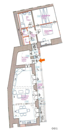 Als Altbausubstanz sind im Eingangsbereich Gewölbe erkennbar, sowie in großen Teilen noch alte Holzdecken vorhanden. Hier ist modernes Wohnen in Einklang mit der Geschichte möglich.