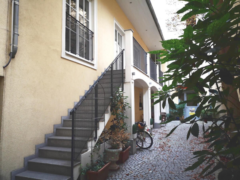 Die Wohnung ist durch einen eigenen Zugang direkt im Innenhof zugänglich. Durch diese Innenhoflage bleibt der Stadtlärm draußen. Gleichzeitig ist der Hauptplatz von Linz nur eine Gehminute entfernt.