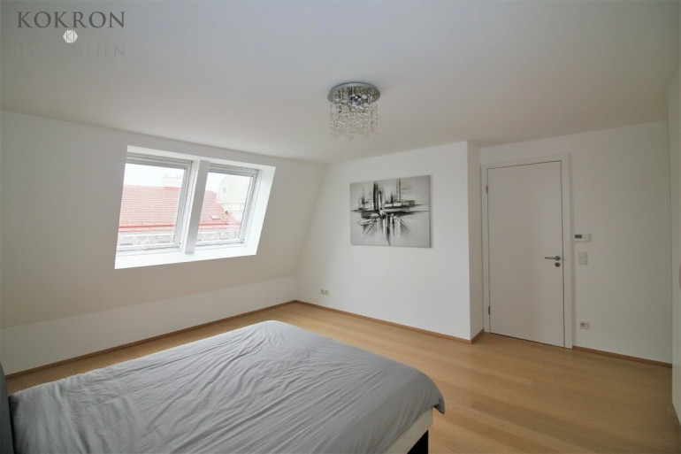 Über einen privaten Liftzugang gelangt man direkt in das 2. DG mit ca. 70m² Wohnsalon mit angrenzender rund 11m² Terrasse und einer offenen, vollausgestatteten Marken-Küche inkl. Weinkühlschrank.
