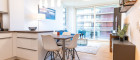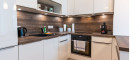 Fliesen, Parkett, Zentralheizung, Einbauküche, Wohnküche / offene Küche, Personenaufzug, Badewanne