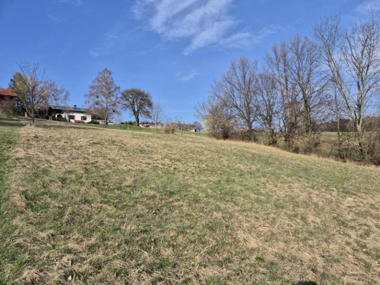 An einer wenig befahrenen Landesstraße - fast könnte man von einer Alleinlage sprechen. Die Nachbarn sind weit genug weg, um Sie in Ihrem Tun nicht zu stören. Das Grundstück ist von Süd nach Nord geneigt - dafür besticht es mit einer tollen Aussicht in die umliegenden Berge.