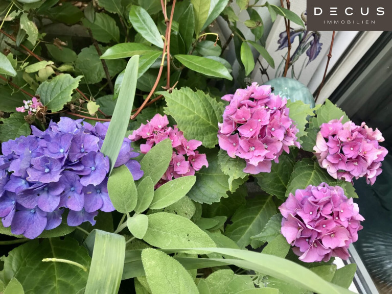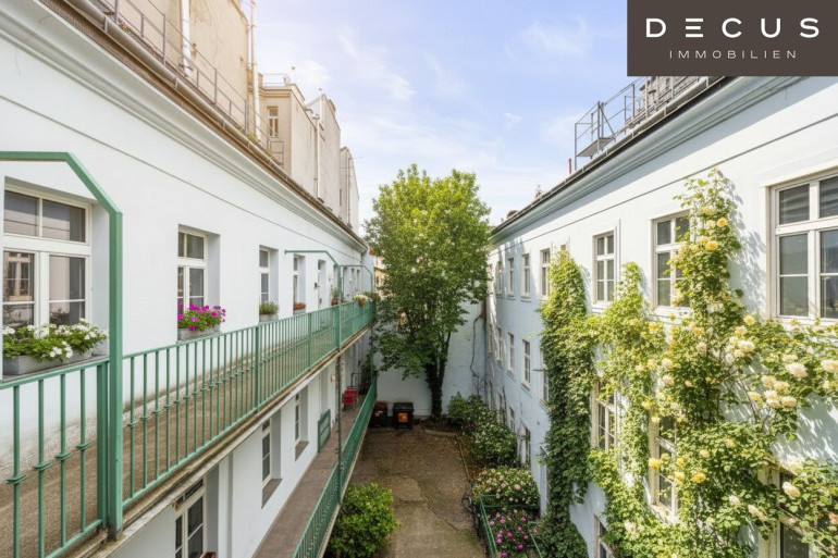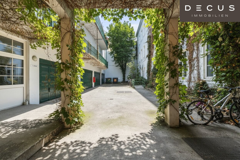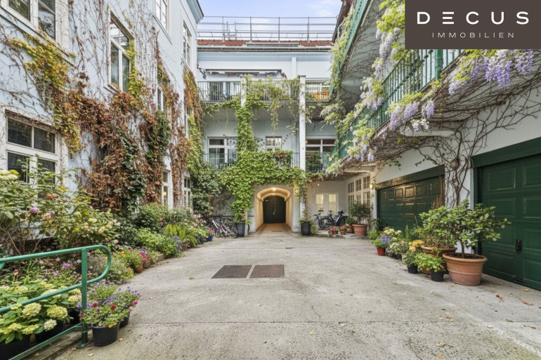 Der begrünte Innenhof ist ein städtisches Kleinod, das mitten in Wien eine Oase der Stille schafft. Ein charmanter, kleiner Rückzugsort mit üppiger Bepflanzung aus Feigenbaum, Rosen, Hortensien, Klematis, Lavendel, Pfingstrosen, Schneerosen, Efeu & mehr.