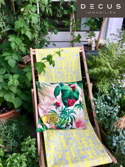 Der parifizierte Außenbereich am Laubengang – mit Blick auf den romantisch bewachsenen Innenhof – bietet einen privaten Platz für Morgenkaffee, ruhige Lesestunden oder ein Glas Wein unter dem Sternenhimmel. Die Gestaltung der Fläche mittels Efeuranken, verschiedenen Blumentöpfen oder Gemüsetrögen kann höchst individuell erfolgen. Der Außengang dient auch als Zugang zu einer Nachbarwohnung.