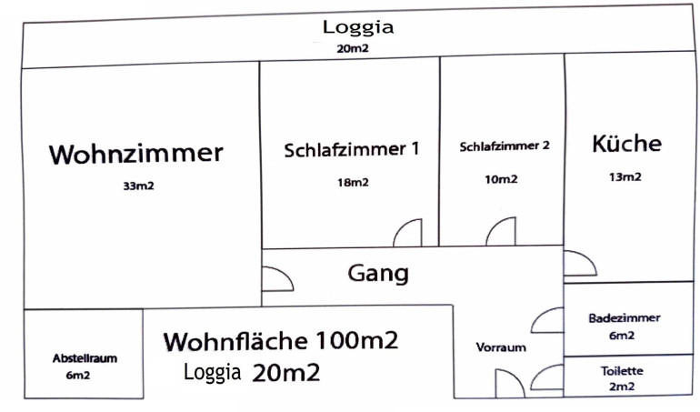 Zugang zur Loggia vom Wohnzimmer und Schlafzimmer;