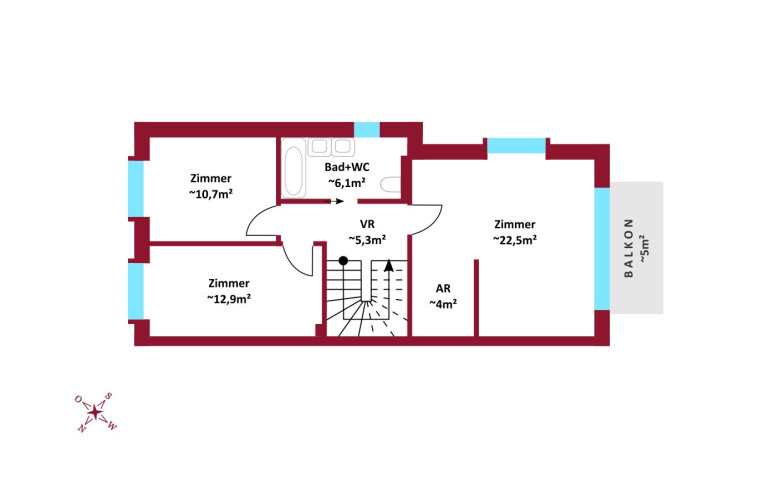 - Zimmer: ca. 22,05 m² mit Zugang zum Balkon ca. 5,03 m²