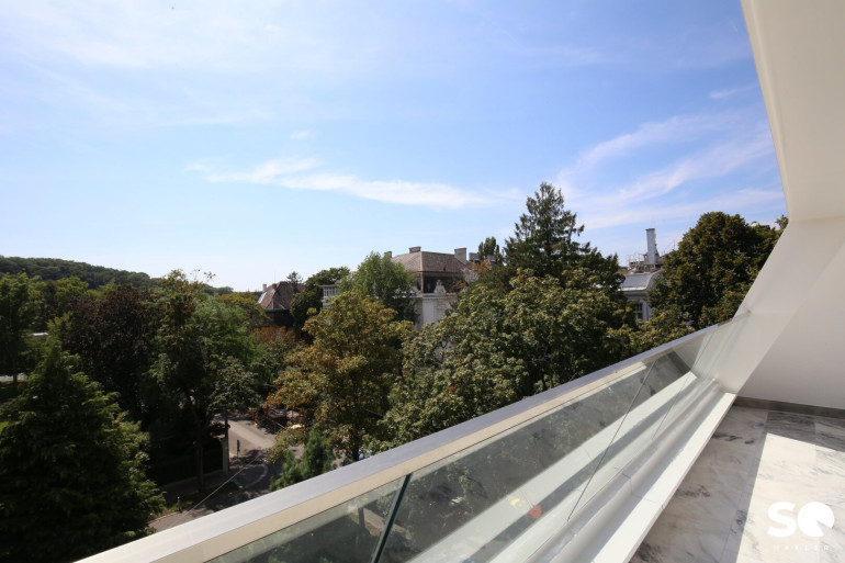 Genießen Sie auf der ca. 26 m² großen Terrasse einen atemberaubenden Blick ins Grüne. Der Weitblick Richtung Hügelpark und Küniglberg sorgt für eine einzigartige Atmosphäre. - Luxuriöses Badezimmer mit Tageslicht