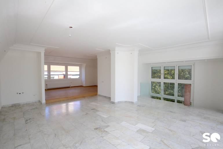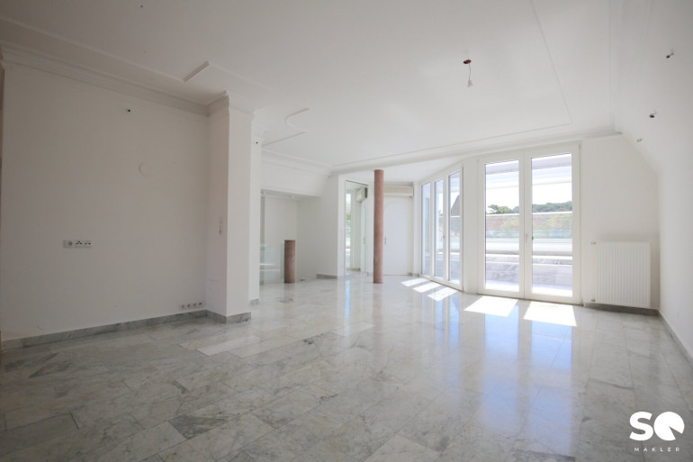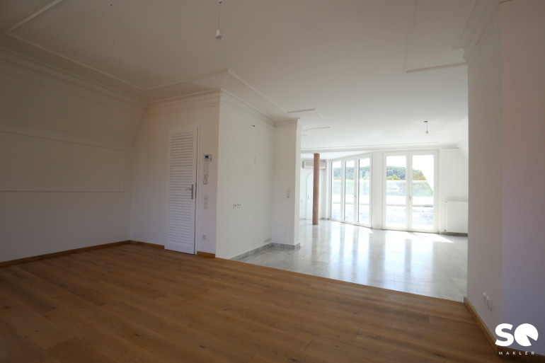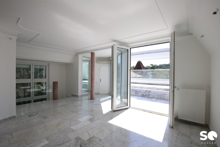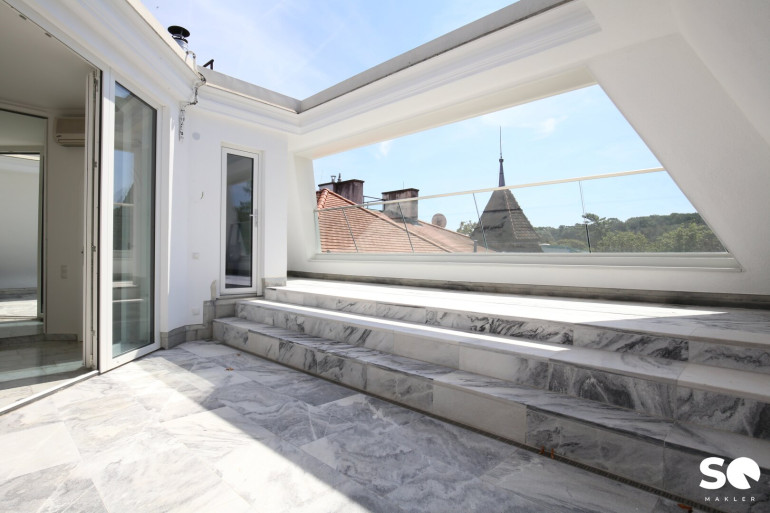Das Herzstück dieser einzigartigen Wohnung ist die ca. 27 m² große, uneinsehbare Südterrasse, die Ihnen einen traumhaften Weitblick Blick Richtung Hügelpark und auf den Küniglberg bietet.