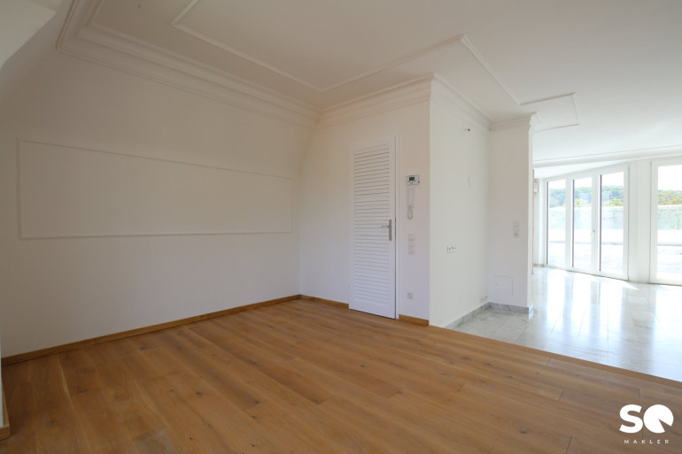 Diese einzigartige Dachgeschosswohnung im begehrten Hietzinger Cottage bietet modernen Komfort auf höchstem Niveau. Die großzügigen, loftartigen Räumlichkeiten verleihen der Wohnung ein offenes, lichtdurchflutetes Ambiente. - Uneinsehbare Südterrasse mit Weitblick