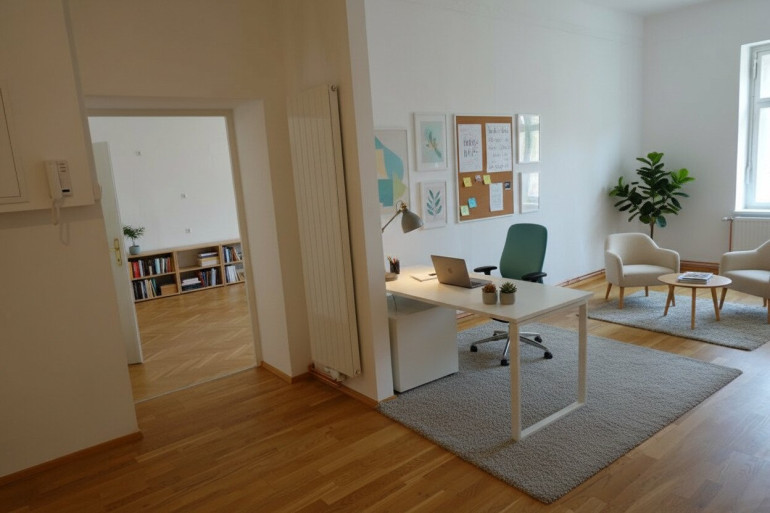 - drei große Räumlichkeiten (rd. 32,14 m2, 27,96 m2 und 41,74 m2)