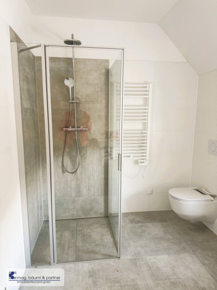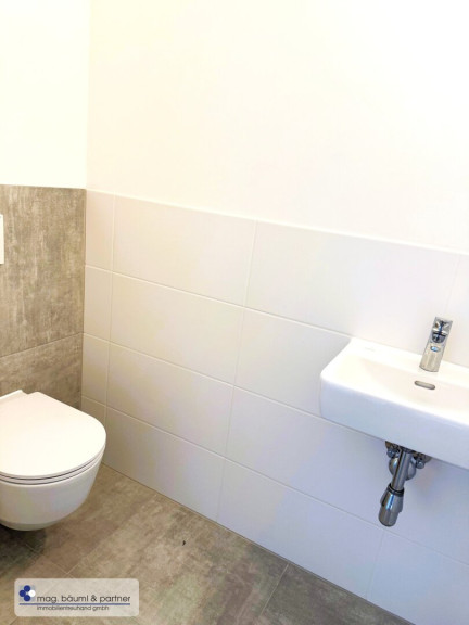 Diese Wohnung ist mit hochwertigen Materialien ausgestattet: Die Fenster sind dreifach verglast mit elektrisch gesteuerter Beschattung (Raffstore). Die Böden im Nassbereich sind mit Feinsteinzeugfliesen in Großformat 60x60 (Boden) ausgestattet. Im Wohnbereich finden Sie Echtholz Parkett, gefasst, geölt und gebürstet vor.