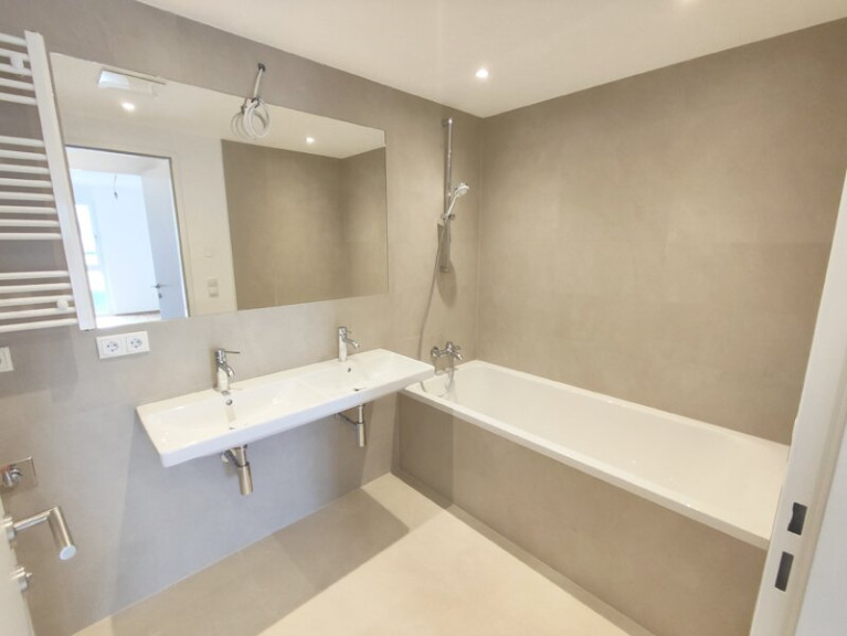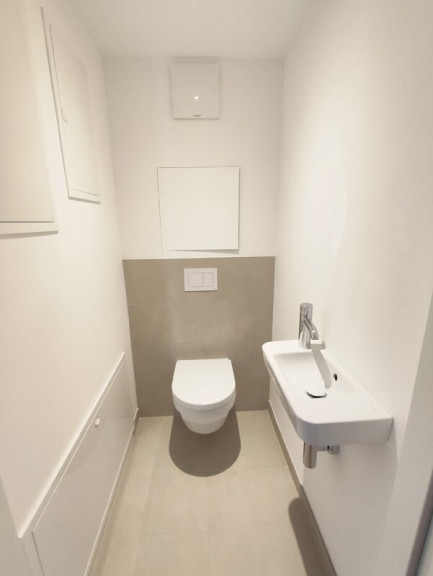 Die Wohnung besticht nicht nur durch ihre Innenausstattung, sondern auch durch die durchdachte Raumaufteilung. Ein modernes Badezimmer mit Doppelwaschtisch, Badewanne und separater Dusche lädt zum Entspannen ein. Das separate WC ist mit einem Handwaschbecken ausgestattet. Und für die sonnigen Tage des Jahres ist die einladende Loggia der perfekte Ort, um die frische Luft zu genießen Auch ein praktischer Abstellraum steht zur Verfügung.