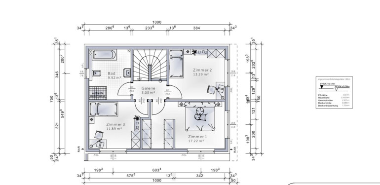 - Galerie (3,03 m²) als Verbindungsraum zu den Schlafräumen