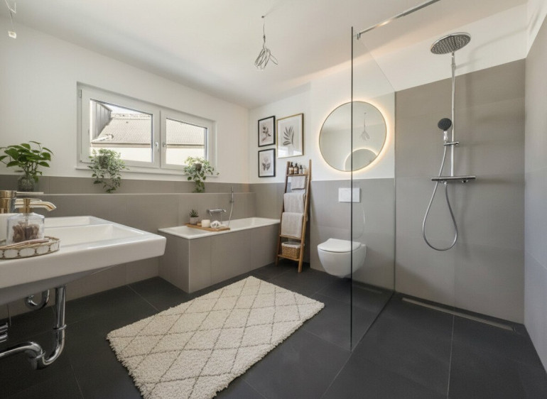 - Großzügiges Badezimmer mit 9,92 m², ausgestattet für Ihre persönliche Wellnessoase