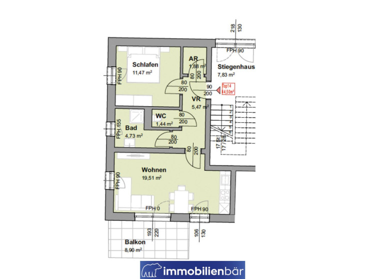 Ab sofort haben Sie die Gelegenheit in leistbares Eigentum zu investieren, denn die Wohnung Top 14 ist verfügbar. Diese Wohneinheit befindet sich im 1.OG und ist Richtung Süden ausgerichtet. Auf insgesamt 44,50 m2 und 2 Zimmer teilt sich die Wohnung praktisch auf. Bad und WC sind hochwertig ausgestattet und in wunderbarem Zustand.