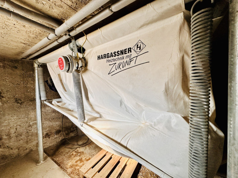 Pelletszentralheizung mit Sacksilo von der Firma Hargassner
