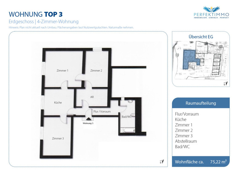 Wohnfläche: ca. 75,22 m² lt. Nutzwertgutachten