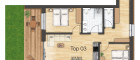 Die Top 3 im Erdgeschoss des Haus 1 umfasst ca. 67 m² und bietet einen hellen Wohn-Essbereich mit Küchenzeile, zwei Schlafzimmer, ein Bad mit Regendusche und WC, ein separates WC sowie eine Terrasse mit Gartenanteil.