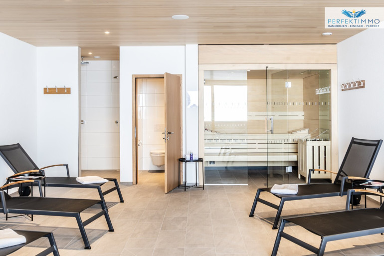 Tiles, Parkett, Underfloor heating, Fitted kitchen, Lift, Shower, Basement car park, Sauna