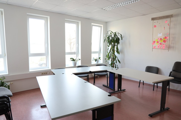 Das Büro befindet sich im 1. Stock einer Gewerbeimmobilie.