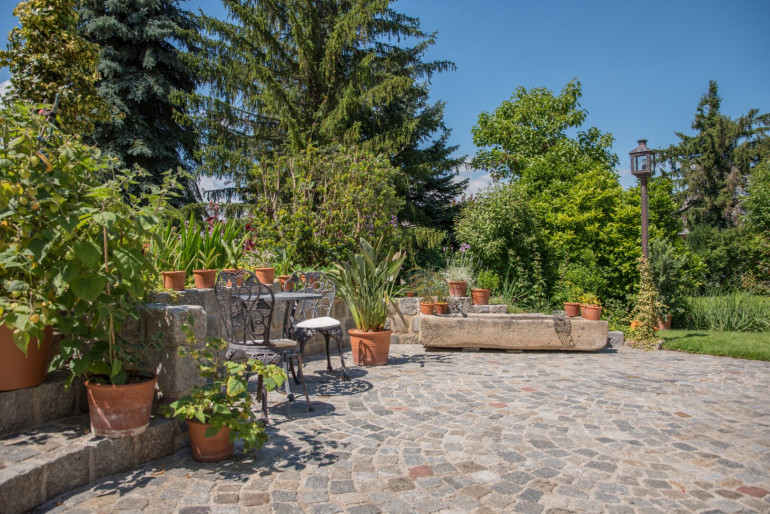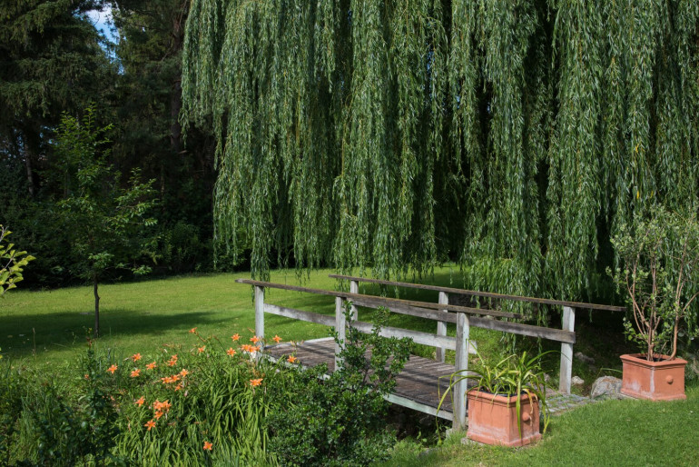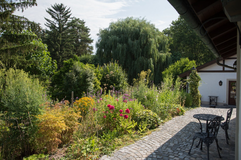 - Ein wunderschön gepflegter Garten mit reifem Baumbestand.