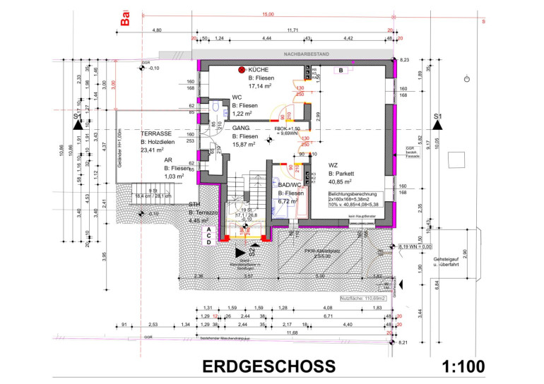 - Raumhöhe: Alle Räume bestechen durch eine großzügige Raumhöhe von 3 Metern.